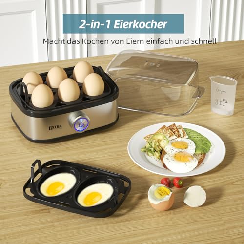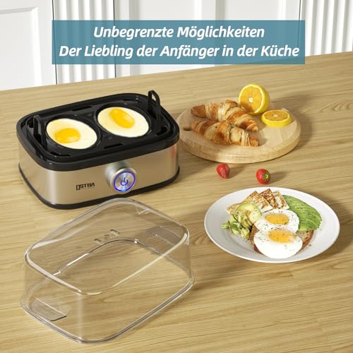 Perfekt gekochte Eier: Bis zu 6 Eier auf einmal! Kochen Sie weiche, mittlere und hart gekochte Eier, pochierte Eier oder Gemüse usw. Es ist das perfekte Gerät für Eierliebhaber, Großfamilien oder Menschen mit vollem Terminkalender.