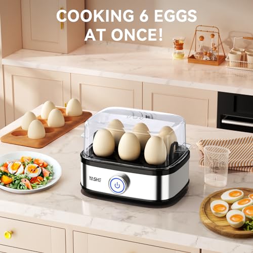 YASHE Eierkocher Edelstahl, 400W Kompakter Eierkocher Multifunktional, 6 Eier leicht zu Pellen, Weich, Mittel, Hart Gekocht, Eierbecher, Omelett-maker, Dampfgarer, Signalton, Kontrollleuchte